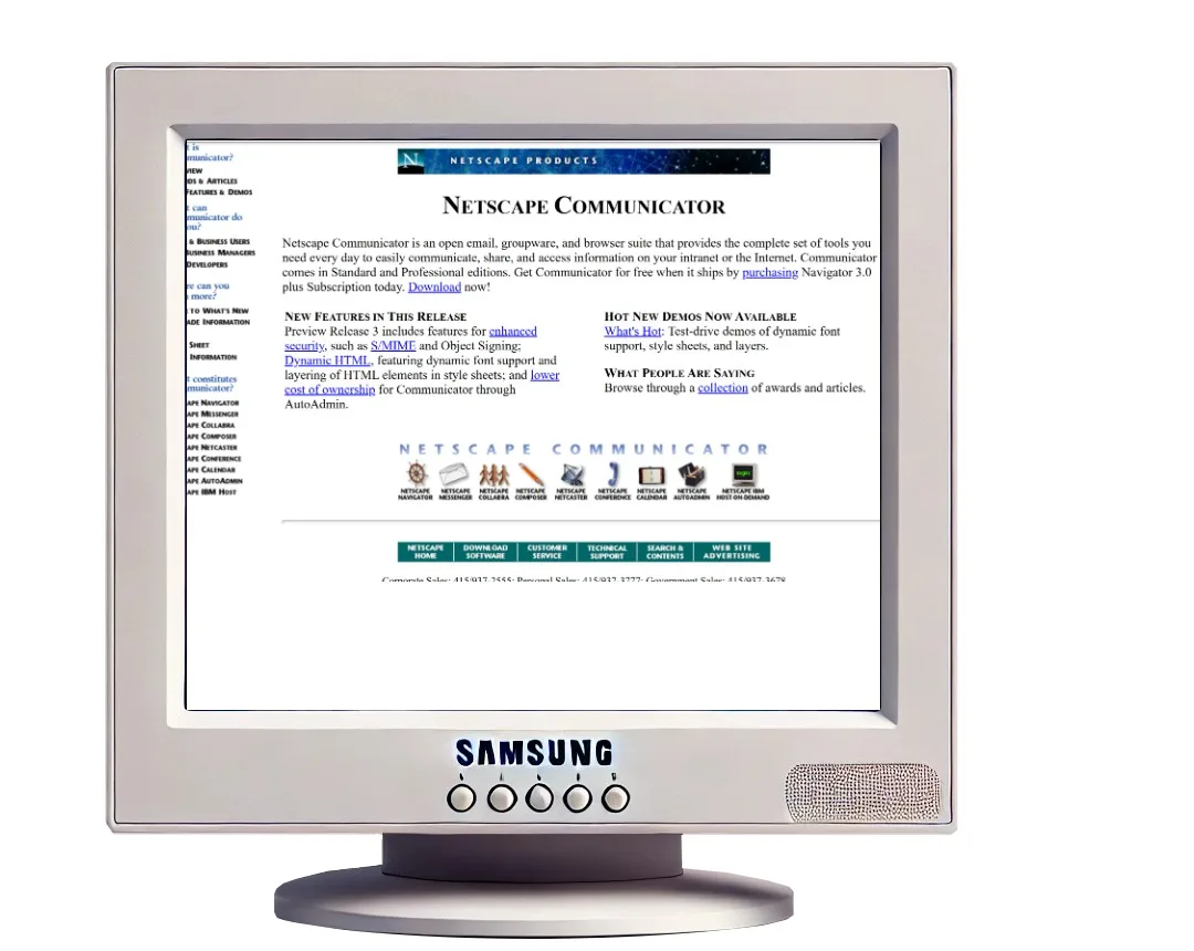 This was a main web page made to showcase the project — it was part of a listing. The actual project was an animated production designed by Marcio S Galli in 1997 and featured at Netscape web site. The production was basically a train moving, coming in 3D, made with multiple images since it was difficult to do dynamic zooming of HTML elements. When the train was moving the user could hear the whistle blow.