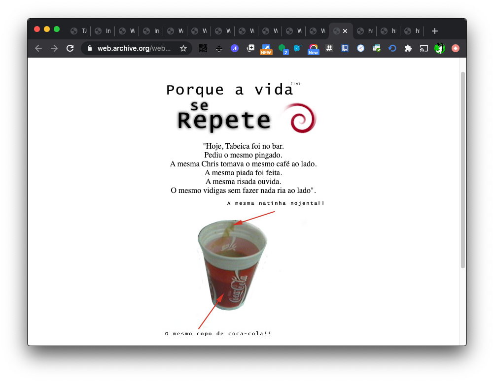 Life repeats itself, the web page - check real HTML at A vida se repete. A theme, an idea, a reflection. We were claming that every day looked the same, the same latte, the same joke, the same friend laughing.